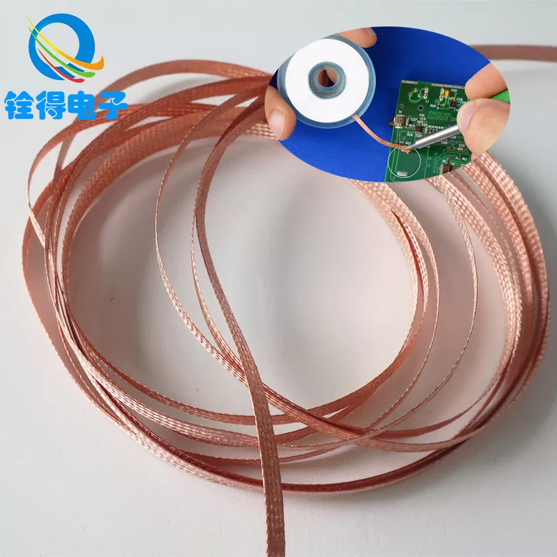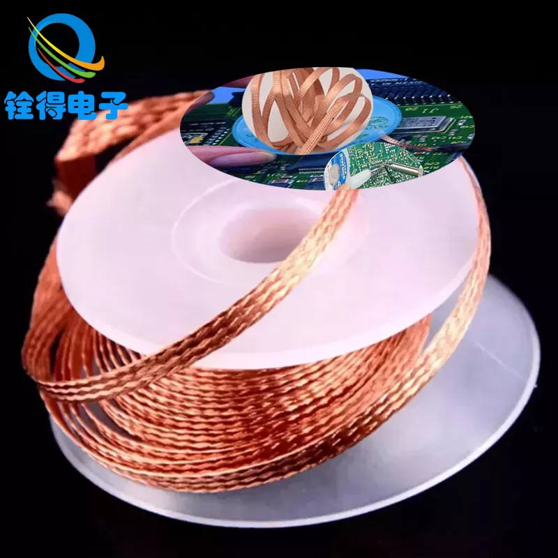 Ako používať medené opletenie absorbujúce cín: Najprv umiestnite elektronické súčiastky, ktoré je potrebné odstrániť spájkou, na vhodné miesto, potom zakryte medený oplet absorbujúci cín na spájkovacom spoji a naneste na spoj primerané množstvo kolofónneho liehu. medený oplet absorbujúci cín na zvýšenie účinku absorbujúceho cín. Potom zahrejte spájkovaný spoj pomocou spájkovačky, aby sa spájka roztavila a spájka bude absorbovaná medeným opletom absorbujúcim cín. Nakoniec odstráňte spájkovačku a medené opletenie absorbujúce cín, skontrolujte, či je spájkovaný spoj čistý, a ak v ňom zostali zvyšky spájky, zopakujte vyššie uvedené kroky.